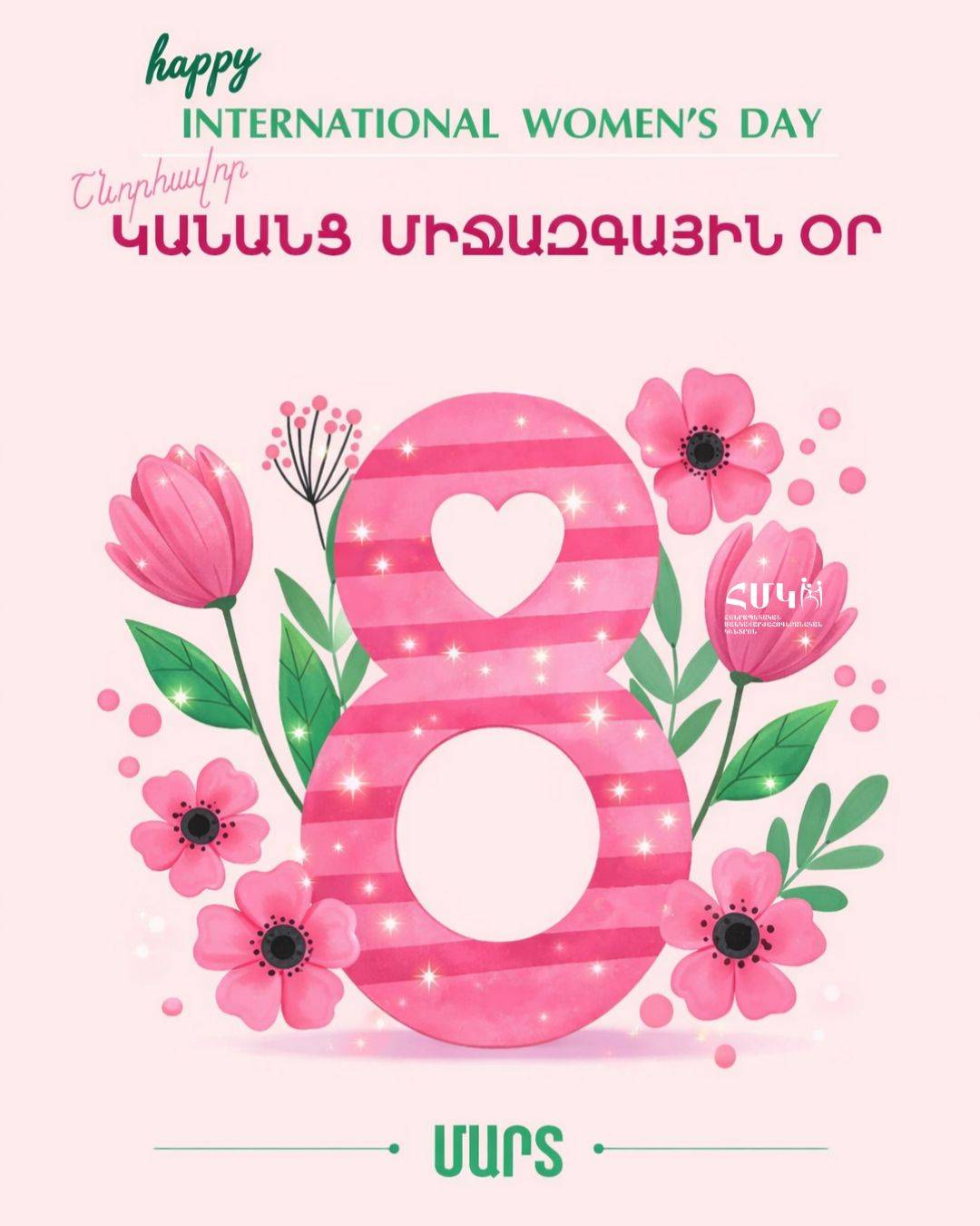 Ջերմորեն շնորհավորում ենք ձեզ Կանանց միջազգային օրվա առթիվ։ Եղեք միշտ երջանիկ ու գնահատված՝ շրջապատված ընտանեկան ջերմությամբ ու սիրով։