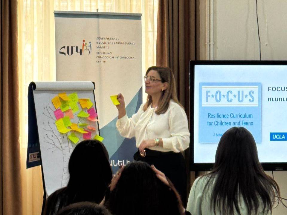 In cooperation with the RA Ministry of Education, Science, Culture and Sports, the Republican Pedagogical-Psychological Center, the University of California, Los Angeles (UCLA), and the Armenian Medical Association of Quebec (Association Médicale Arménienne du Québec – AMAQ), the FOCUS Resilience Curriculum aimed at developing resilience in children and adolescents has been implemented in Armenia since 2023, within the framework of which two-day training courses were held at the Republican Pedagogical-Psychological Center on December 22-23, 2025.