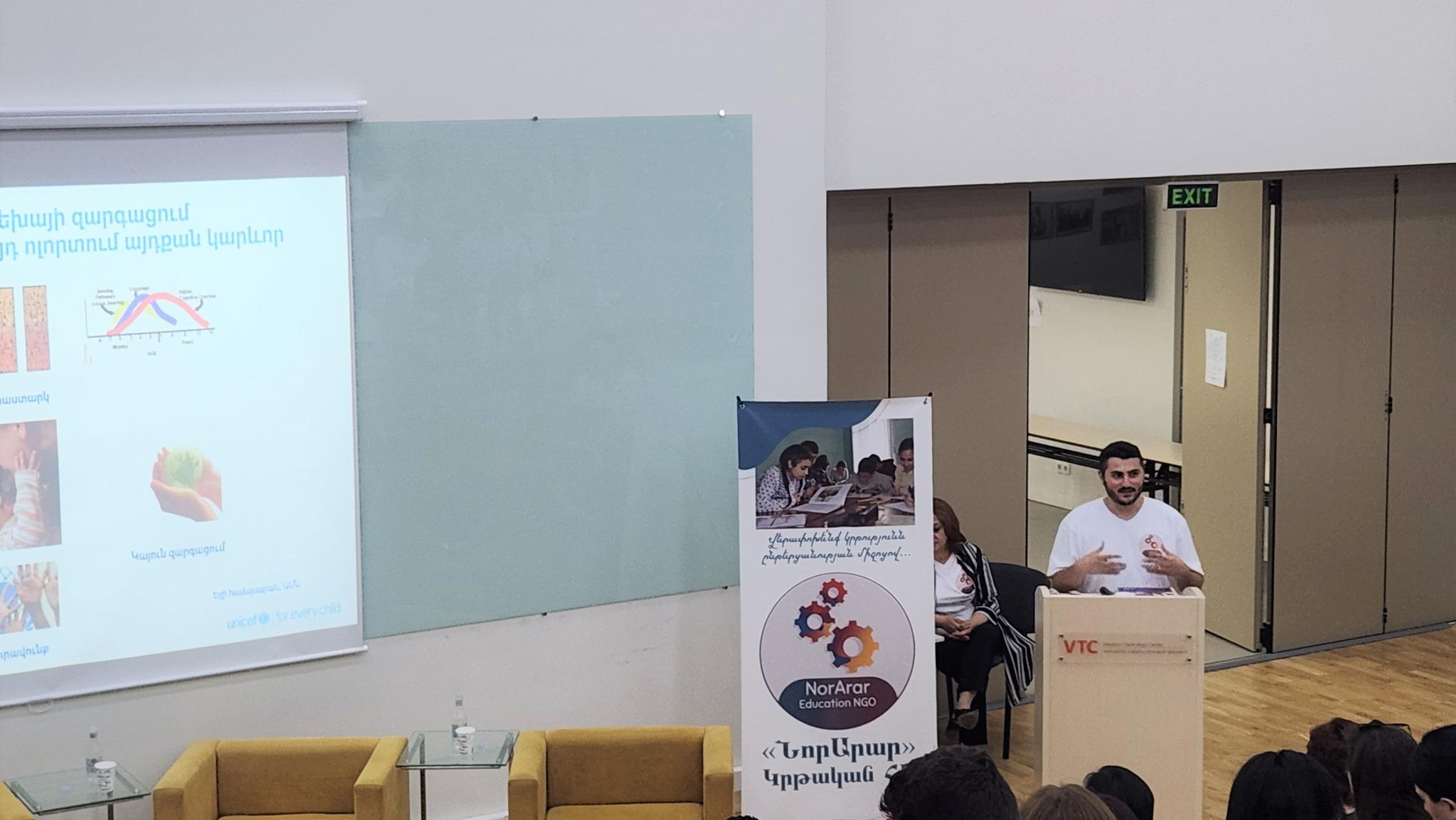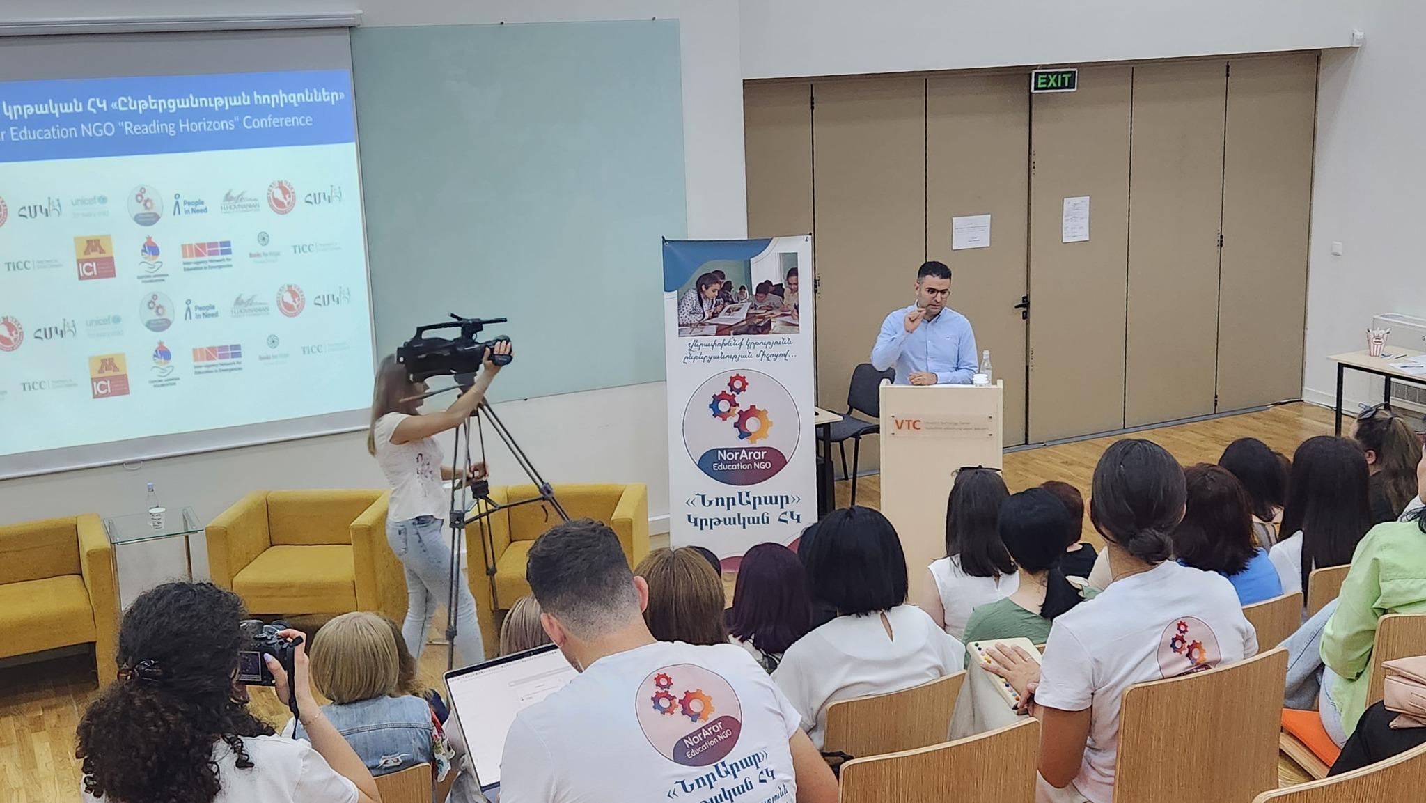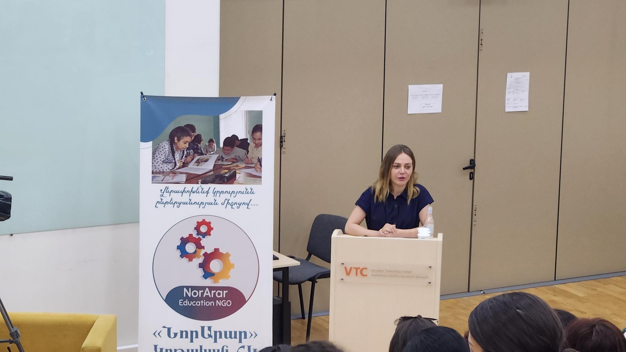The president of NorArar Education NGO Mher Davtyan and the head of educational programs Arpine Baghdasaryan presented the achievements and difficulties they met during the “Help Me Read” program and clarified the future tasks by analyzing professional experience and summarizing the results.