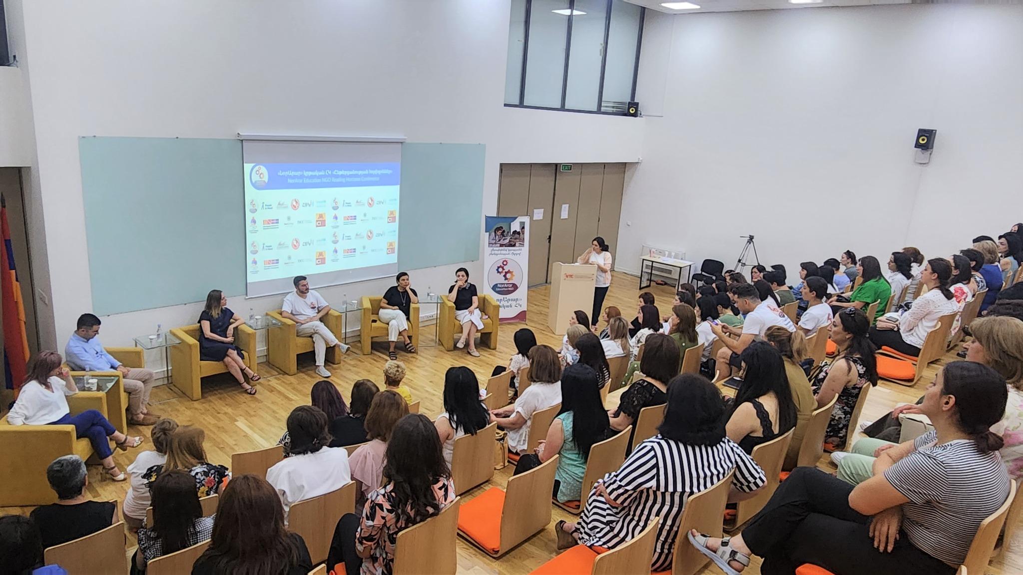 The speakers of the panel discussion were The president of NorArar Education NGO Mher Davtyan, RPPC director Lilit Mnatsakanyan, Koryun Khachaturyan, executive director of the “Hovnanyan Family Foundation”, Tatevik Davtyan, Programme Manager at the Cooperation Section of the European Union Delegation in Armenia, Alvard Poghosyan, UNICEF Armenia’s Education Programs Manager and Haghpat Secondary School director Hasmik Adamyan. Speakers addressed the issues of the early development of basic literacy skills, formation of sustained interest in learning and thinking skills, as well as development and implementation of effective mechanisms and methods aimed at developing independent reading skills of children with reading difficulties.
