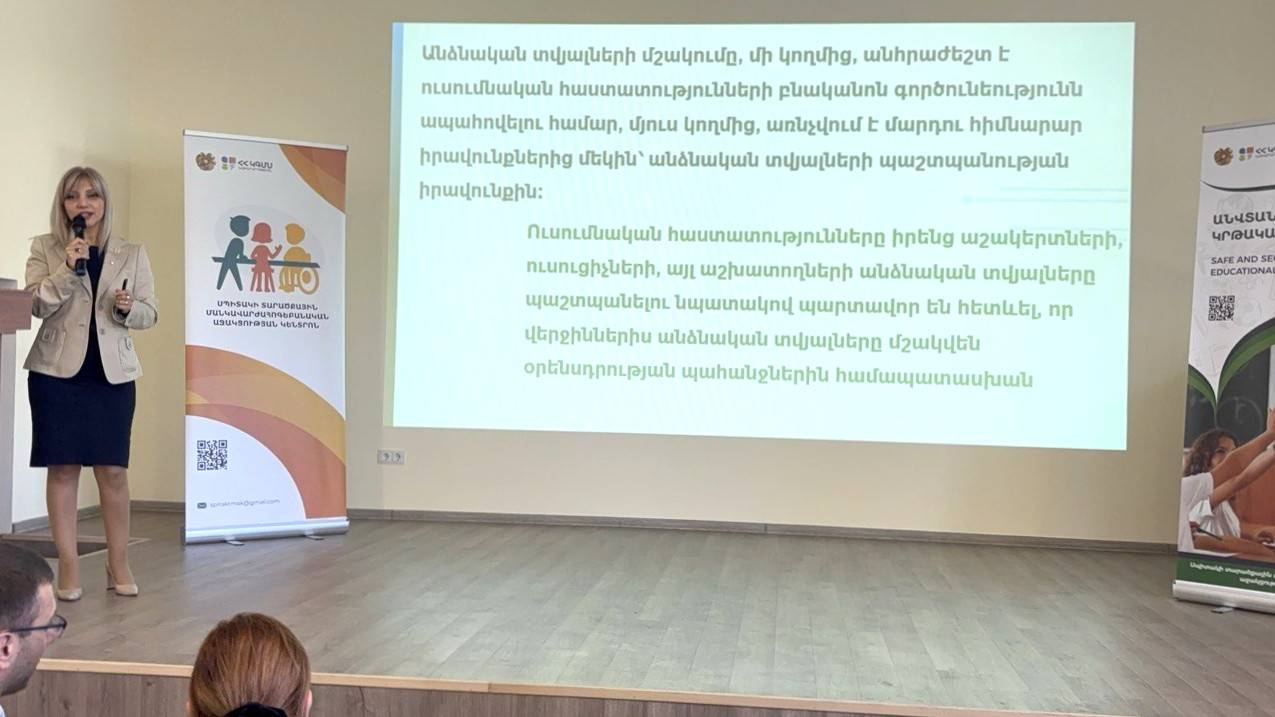 «ԱՆՁՆԱԿԱՆ ՏՎՅԱԼՆԵՐԻ ՊԱՇՏՊԱՆՈՒԹՅՈՒՆ․ ԳԻՏԱԿՑՈՒՄԻՑ ԴԵՊԻ ԱՆՎՏԱՆԳ ԿՐԹԱԿԱՆ ՄԻՋԱՎԱՅՐ» զեկույցում Մ․ Սողոմոնյանը հանգամանալիորեն ներկայացրեց անձնական տվյալների պաշտպանությանն ուղղված իրավական կարգավորումները, երեխաների անձնական տվյալների վերաբերյալ իրազեկվածությանը և դրանց պաշտպանությանը միտված գործողությունների ընթացակարգերը: