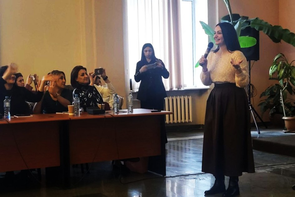 ՀՄԿ տնօրենի տեղակալ Հայկուհի Ադամյանի ««ԻՆՉ ՀԱՄ ՈՒՆԻ ԼՈՒՍԻՆԸ» ԿԱՄ ՊԱՏՄՈՒԹՅՈՒՆՆԵՐ, ՈՐՈՆՔ ՍՏԵՂԾՈՒՄ ԵՆ ԱՊԱՀՈՎ և ՀՈԳԵԲԱՆԱԿԱՆ ԱՆՎՏԱՆԳ ՄԻՋԱՎԱՅՐ» թեմայով զեկույցը նվիրված էր նախադպրոցական կրթական միջավայրում հոգեբանական անվտանգության ապահովմանը և փոխհարաբերությունների զարգացմանը ինտերակտիվ մոտեցումների, խաղերի, վարժությունների և պատմությունների կիրառմամբ: Մասնակիցները ծանոթացան գործիքների, որոնք նպաստում են երեխաների փոխհարաբերությունների և հուզական բարեկեցության զարգացմանը։