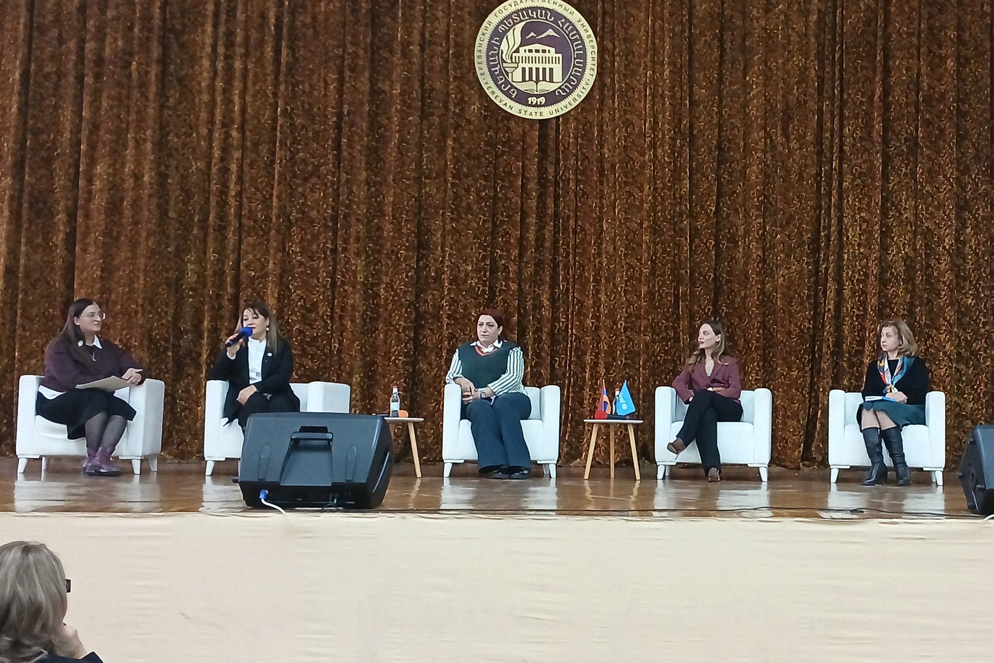 «ԱՊԱՀՈՎ ՄԻՋԱՎԱՅՐ ԱՅՍՕՐ, ԱՆՎՏԱՆԳ ԱՊԱԳԱ ՎԱՂԸ» թեմայի շրջանակում ՀՄԿ Մանկավարժահոգեբանական աջակցության բաժնի հոգեբան Արմինե Ավագյանը մանրամասնեց երեխաների ֆիզիկական, հոգեբանական և սոցիալական անվտանգության ապահովման պայմանները՝ ընդգծելով, որ անվտանգ միջավայրը երեխայի առողջ զարգացման, ինքնավստահության և բարեկեցության հիմնասյունն է։ Անդրադարձ կատարվեց նաև կանխարգելիչ մոտեցումներին, մասնագետների դերին և համագործակցության նշանակությանը՝ կրթական ու սոցիալական միջավայրերում անվտանգ ներկա ստեղծելու և դրա միջոցով անվտանգ ապագա ձևավորելու համատեքստում։
