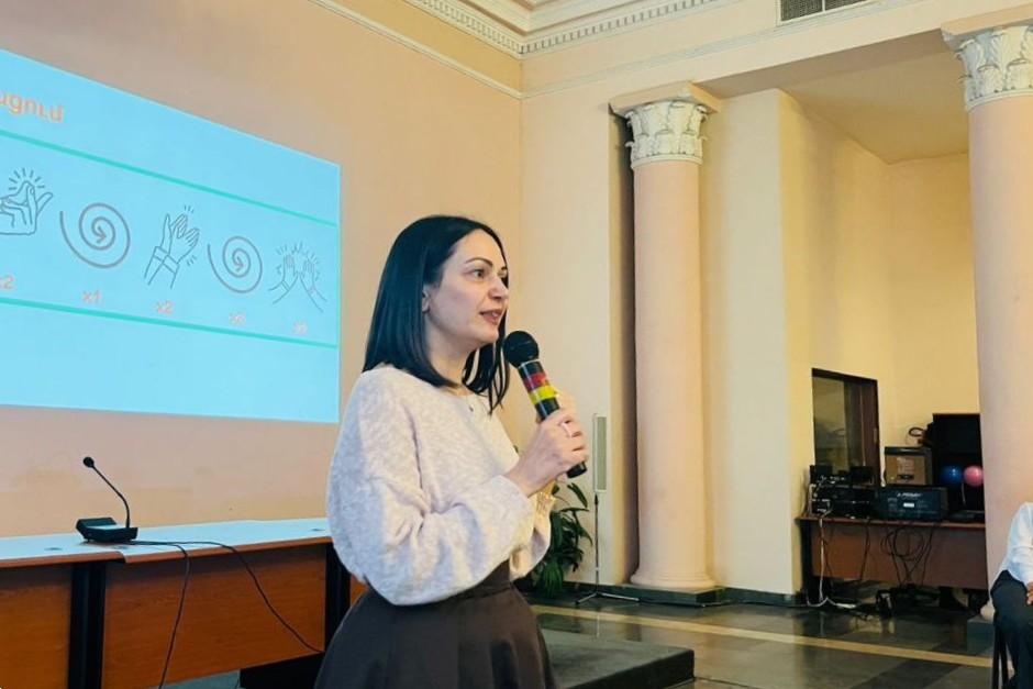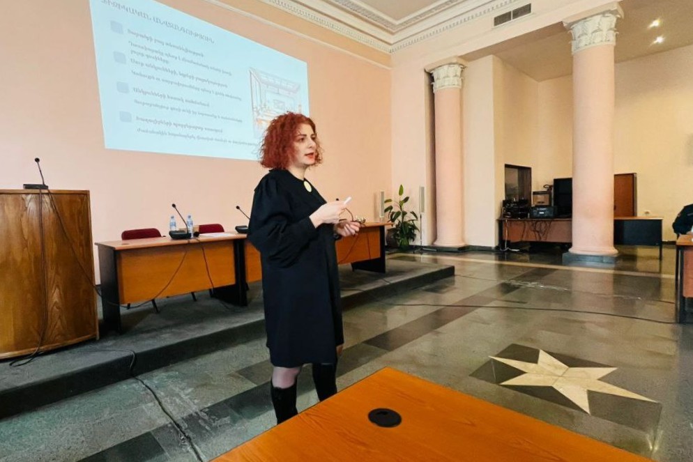 ՀՄԿ Գնահատման բաժնի ղեկավար Լիանա Մարգարյանը հանդես եկավ «ԻՆՉՊԵՍ ՍՏԵՂԾԵԼ ԱՊԱՀՈՎ ԽԱՂԱՅԻՆ ՄԻՋԱՎԱՅՐ․ ԴԱՍՏԻԱՐԱԿԻ ԳՈՐԾԻՔԱԿԱԶՄ 3-6 ՏԱՐԵԿԱՆՆԵՐԻ ՀԱՄԱՐ» զեկույցով։ Նա մասնակիցներին ներկայացրեց այն հիմնական սկզբունքները, գործնական մոտեցումներն ու գործիքները, որոնք միտված են նախադպրոցական տարիքի երեխաների համար անվտանգ խաղային միջավայրերի ձևավորմանը։