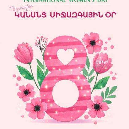 Ջերմորեն շնորհավորում ենք ձեզ Կանանց միջազգային օրվա առթիվ։ Եղեք միշտ երջանիկ ու գնահատված՝ շրջապատված ընտանեկան ջերմությամբ ու սիրով։